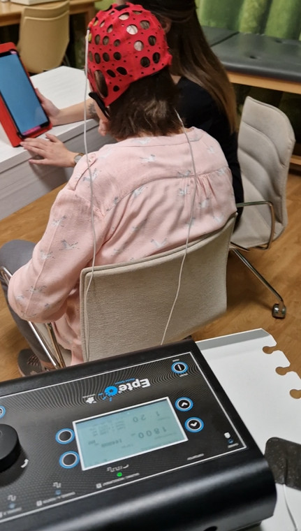 Es una técnica de neuromodulación cerebral no invasiva e indolora que aplica una corriente galvánica a baja intensidad sobre el cuero cabelludo (transcraneal) con el objetivo de estimular áreas específicas del cerebro.